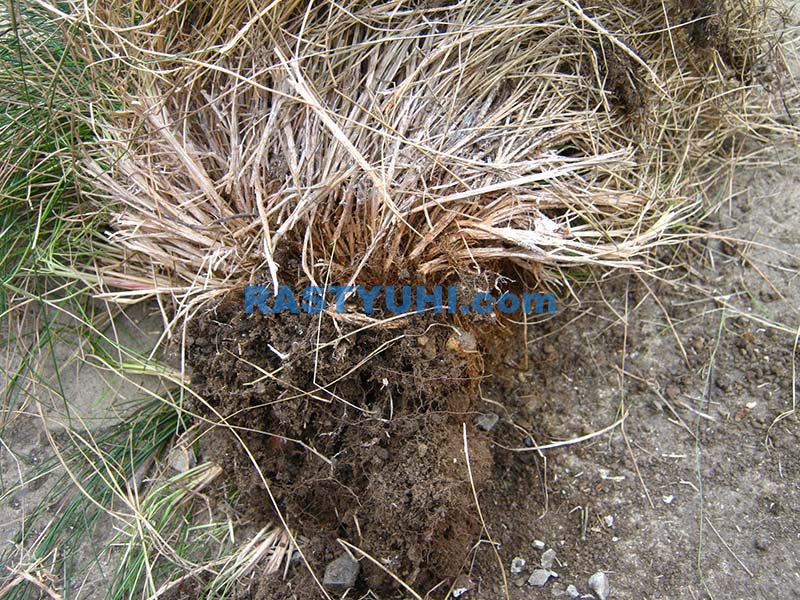 Pokud už vám na zahradě roste kostřava šedá, nejjednodušší způsob, jak ji rozmnožit, je dělení keře. Pro takové účely se nejlépe hodí rostliny, které nejsou příliš staré – 2-3 roky staré. Protože velké staré trsy mají za prvé velmi hustý, pletený oddenek, který je obtížné dělit. Bude muset být nakrájen ostrým nožem nebo předem namočený ve vodě. A za druhé, jejich střední část humna je suchá a pouze na okraji najdete zelené plochy s kořeny. Mladé exempláře od 2 let (dříve prostě nebude co dělit) mají zcela zelené živé trsy, které lze snadno ručně oddělit. Z jedné rostliny můžete získat mnoho řízků. Čím větší je dělení, tím rychleji rostlina dosáhne své plné velikosti.