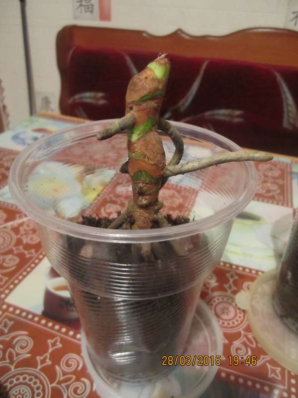 Kořeny jsou samozřejmě stále malé, ale protože začalo hnití, je třeba je zasadit do země. Měl by být sypký a vzdušný, obsahovat prášek do pečiva do 30-50 % celkového objemu.