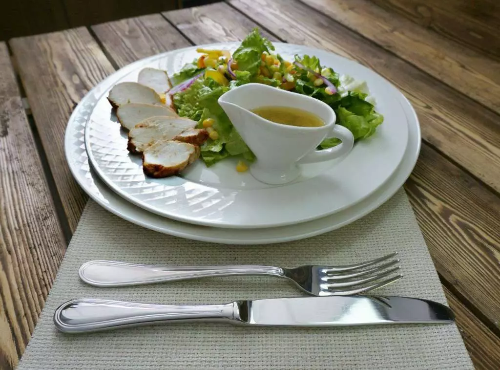 Pokud si poléváte omáčku sami, nepoužívejte příliš mnoho, protože by jí mělo být dost pro všechny. V případě, že jste to nespočítali správně a nalili jste hodně dresinku, nemusíte omáčku namáčet chlebem a dopíjet poslední kapku, to je nevhodné.