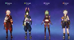 - elektro charakter. Spouští „stimulační“ reakci, která „vrací minulost“. Může to být Bei Dou, Ke Qing, Liz, Raiden, Razor, Sara, Shinobu, Fischl, Yae Miko;