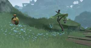 A tady postava stojí poblíž, ale průhledná pochodeň je stále částečně viditelná – pokud běžíte, je snadné ji minout.